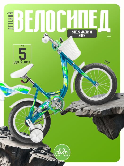 Купить Детский велосипед Stels Magic 18, год 2025, цвет Синий-Зеленый Одинарные в интернет-магазине с доставкой.