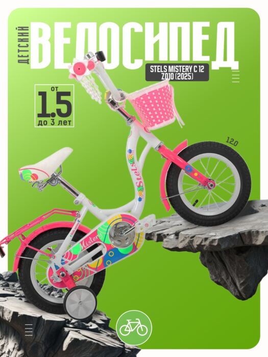 Купить Детский велосипед Stels Mistery C 12 Z010, год 2025, цвет Белый-Розовый Одинарные в интернет-магазине с доставкой.