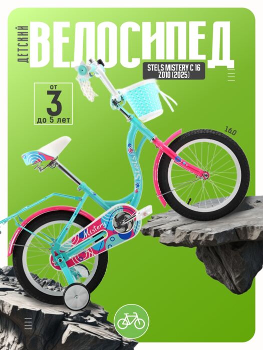 Купить Детский велосипед Stels Mistery C 16 Z010, год 2025, цвет Зеленый Одинарные в интернет-магазине с доставкой.