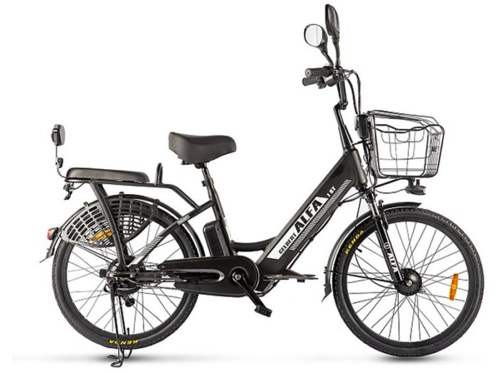 Комфортабельный электровелосипед без переключения передач. Подходит для прогулочного катания в городских условиях и по несложным маршрутам в лесу. Диаметр колес — 24 дюйма. Вес — 34 кг. Грузоподъемность — до 110 кг. Пробег на одной зарядке — до 30 км. Максимальная скорость — до 25 км/ч. Технические особенности: алюминиевая рама (Hardtail, интегрированный багажник), амортизационная вилка пружинного типа, двойные алюминиевые обода (под ниппель AV), надежные барабанные тормоза, редукторный мотор мощностью 250 Вт, литий-ионная батарея емкостью 10.4 Ah, защита цепи, длинные металлические крылья, задний багажник с сиденьем и спинкой, комфортное седло, передняя корзина, система освещения, центральная подножка, подножки для водителя и пассажира, зеркала заднего вида.