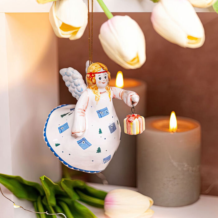 Купить Елочная игрушка Ярославская Керамическая Мануфактура Ангел с подарком с доставкой.