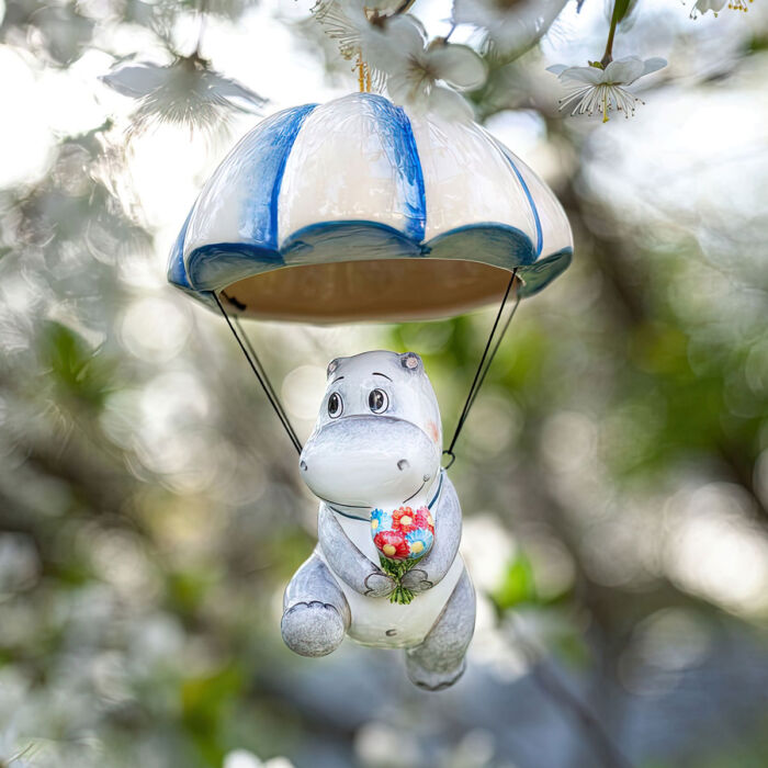 Вы скажете, что бегемоты не прыгают с парашютом, но бегемотик Ярославской керамической мануфактуры — исключение. В нём столько грации и изящества, что он непременно будет ловить на себе восхищённые взгляды и украсит собой любой интерьер.