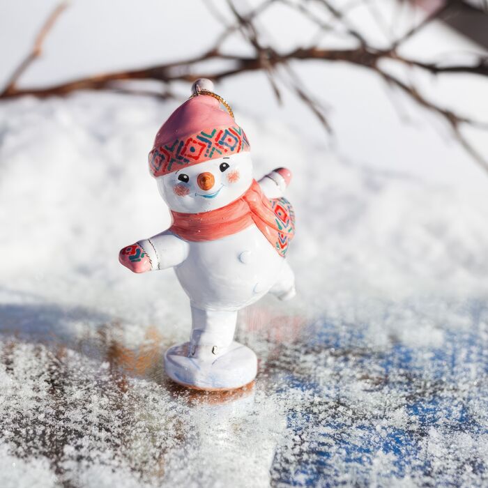 Купить Елочная игрушка Ярославская Керамическая Мануфактура Снеговик-конькобежец с доставкой.