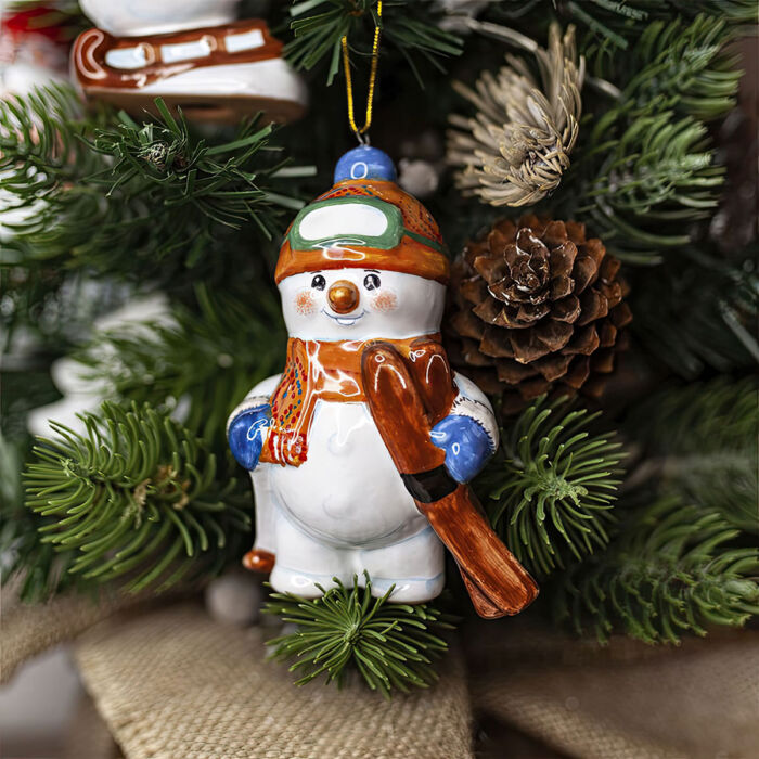 Купить Елочная игрушка Ярославская Керамическая Мануфактура Снеговик-лыжник с доставкой.