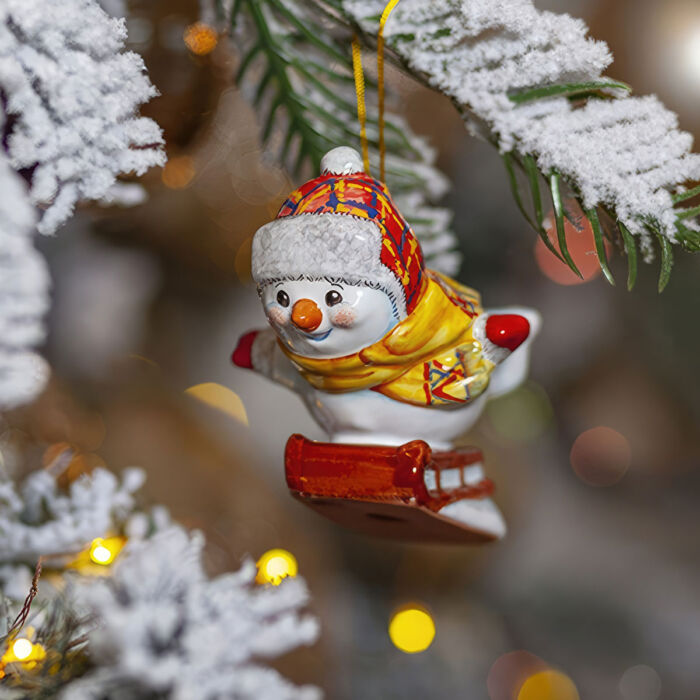 Купить Елочная игрушка Ярославская Керамическая Мануфактура Снеговик на санках с доставкой.