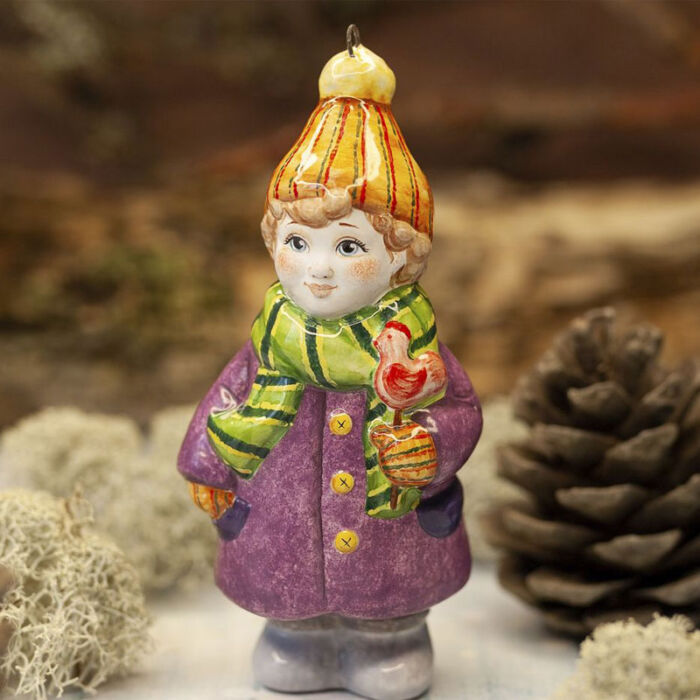 Купить Елочная игрушка Ярославская Керамическая Мануфактура Зима пришла. Сашенька с леденцом с доставкой.