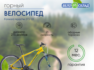Купить Горный велосипед Forward Apache 27.5 1.0, год 2021, цвет Желтый-Зеленый, ростовка 17 27.5 дюймов в интернет-магазине с доставкой.