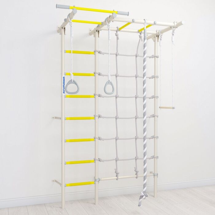 Игровой комплекс изготовлен из высококачественных материалов и обладает прочной конструкцией, что гарантирует его долговечность и надежность. Он оснащен различными элементами, такими как турник, рукоход, трапеция, канат и кольца, позволяющими выполнять разнообразные упражнения. Благодаря этому шведская стенка подходит как для детей, так и для взрослых.