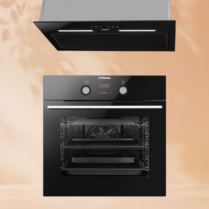 Комплект включает в себя все, что нужно для современной кухни: Вытяжку Hansa OMP6553BGH-G +Духовой шкаф Hansa BOES68465.