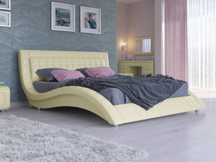 Купить Мягкая Кровать Орматек Атлантико (Экокожа Кремовый) 200×200 Кровать с доставкой.