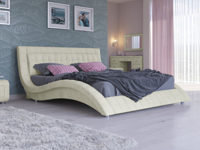 Купить Мягкая Кровать Орматек Атлантико (Ткань: Велюр Лофти Лён) 160×190 Кровать с доставкой.