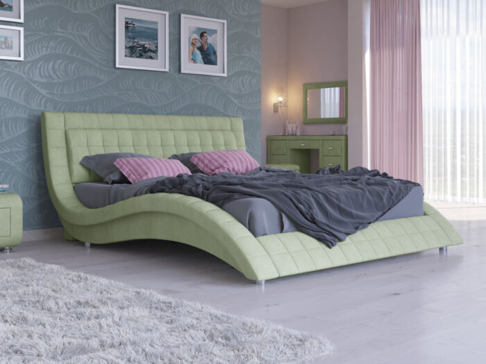 Купить Мягкая Кровать Орматек Атлантико (Ткань: Велюр Лофти Олива) 200×200 Кровать с доставкой.