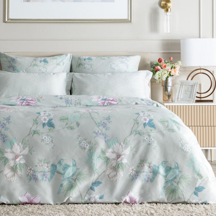 Купить Постельное белье Kaori Зеленый Евро Сатин CozyHome в интернет-магазине с доставкой.