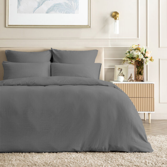 Купить Постельное белье Nuvola grigia Серый Евро Муслин CozyHome в интернет-магазине с доставкой.