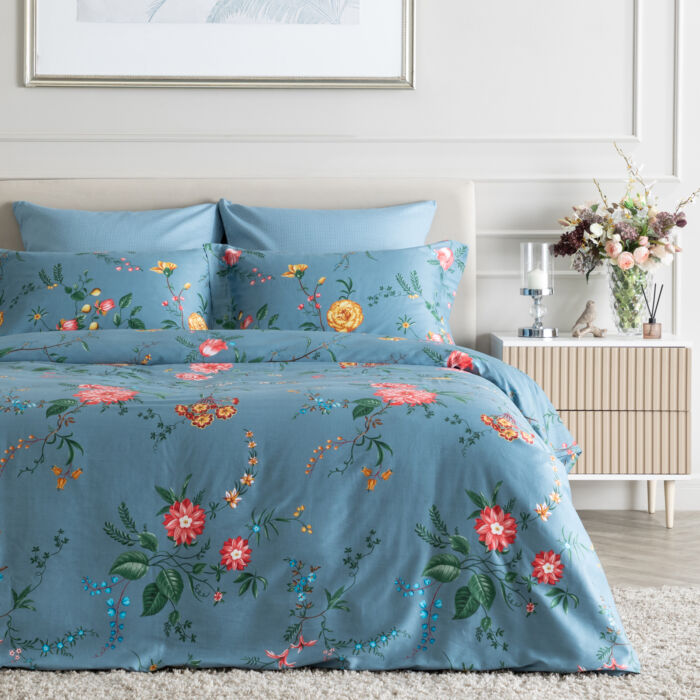 Купить Постельное белье Sirmione Синий Двуспальный Сатин CozyHome в интернет-магазине с доставкой.