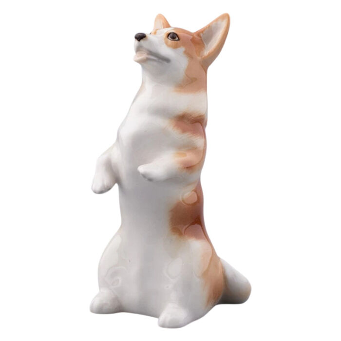 Эта очаровательная фарфоровая фигурка изображает веселого и добродушного корги. Порода известна своими короткими лапами, длинными телами и забавными ушками, и мастер смог передать эти особенности с удивительной точностью. Шерсть корги передана мягкими линиями и плавными переходами оттенков, что создает эффект настоящей пушистой шубки. Скульптура станет отличным дополнением коллекции или украшением интерьера